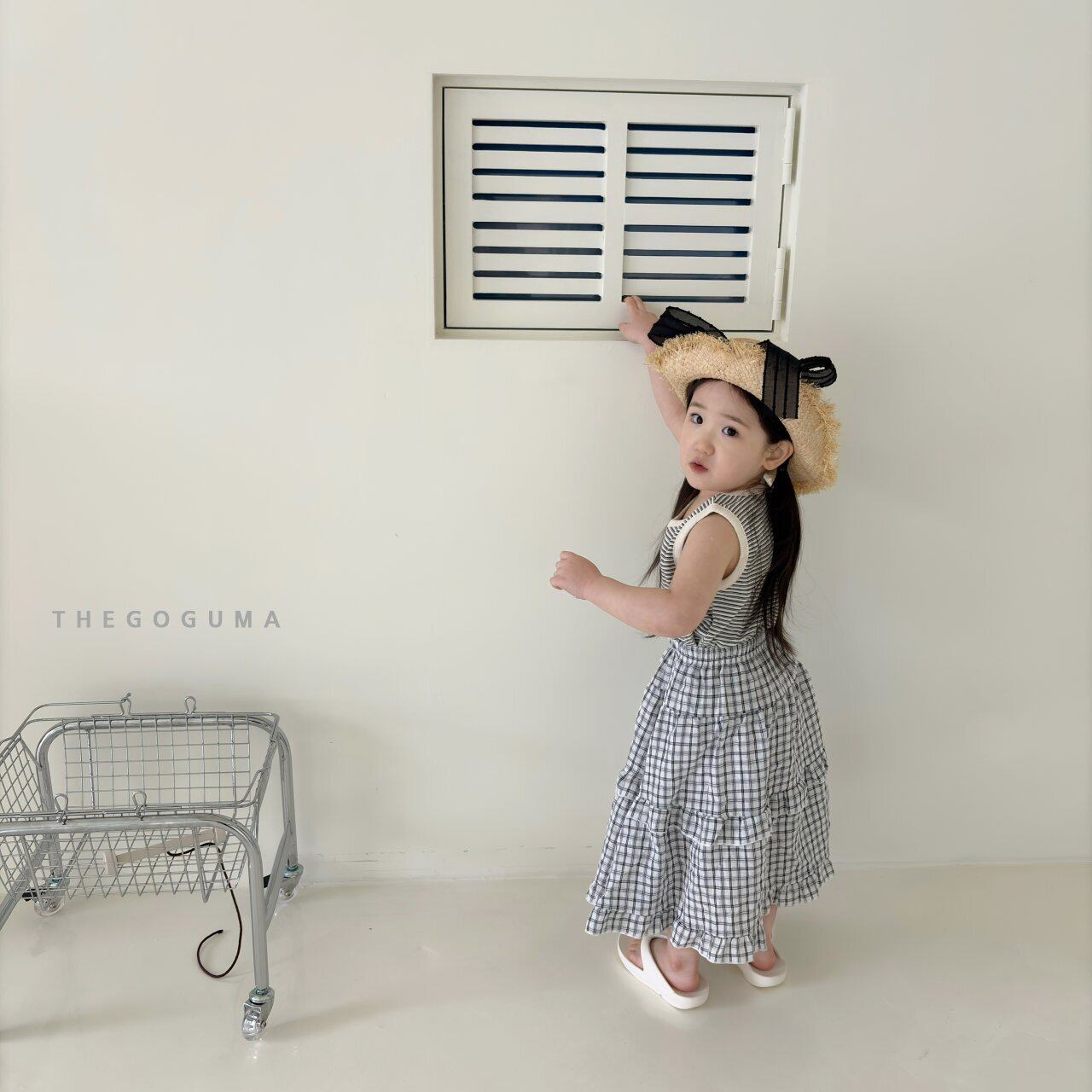 【予約】/ (kids) Cherry, plaid tiered skirt